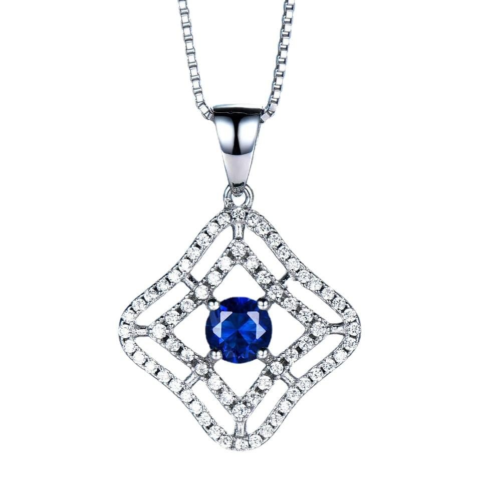 925 Sterling Silver Sapphire and White Diamond Pendant Earrings Gift Set For Women