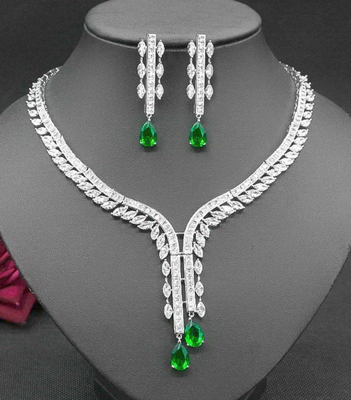 925 Sterling Silver Sapphire and White Diamond Pendant Earrings Gift Set For Women