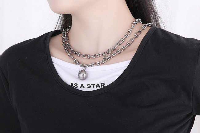 • Stainless steel necklace with two layers of fancy chain.